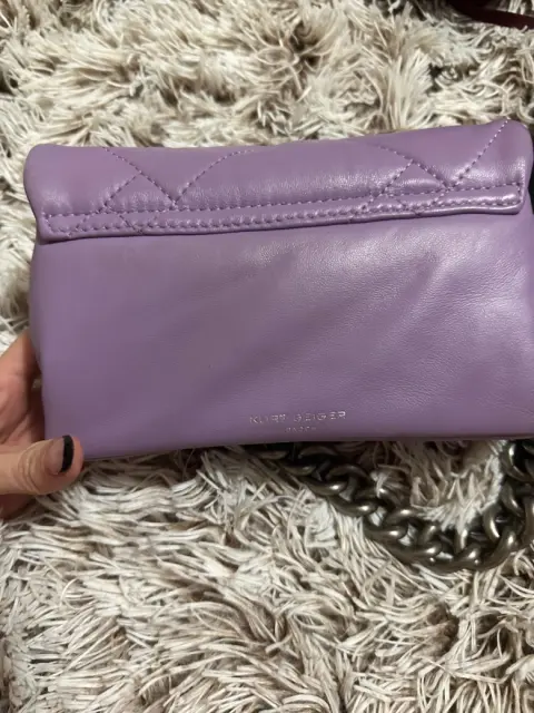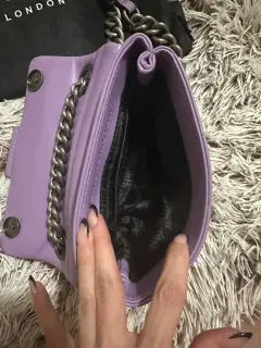 Bolsa Kurt Geiger, diseño en piel súper soft, modelo con cadena mas gruesa, color lila. Actualmente agotada. Incluye guardapolvo y certificado. Esta hermosa e impecable