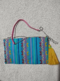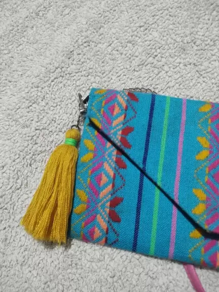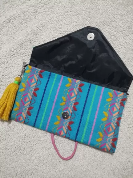 Bolsa mexicana hermosa 😍. Bolsa estilo sobre de 15x18 cm, color azul con detalles mexicanos con colores vivos, estética de 10.