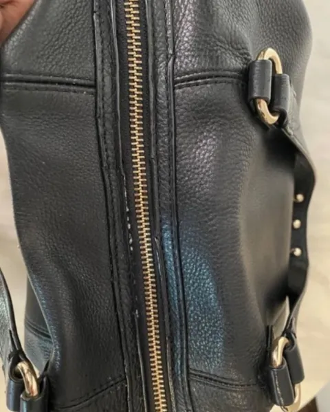 Bolsa negra de piel. Hermosa bolsa negra de piel, Juicy Couture, se puede usar como crossbody, en el brazo, hombro, etc está hermosa y aún tienen mucha vida. Ligeros detalles de uso que se ven en las últimas fotos