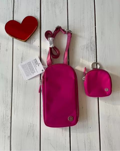 Bolsa para celular Lululemon. Bolsita con 2 módulos ambos con cierre.Correa ajustable para crossbody.Hecha en nylon reciclable y repelente al agua.La bolsa pequeña, la puedes separar y colgar en otrabolsa o utilizar separada.Dentro de la bolsa grande hay espacio para 5 tarjetas yuna bolsita con malla.Medidas bolsa grande: 10 cm largo, 2 cm de grueso y 19cm de alto.Como referencia cabe un iPhone 13 Pro Max.Medidas bolsa pequeña: 8 cm de largo, 8.5 cm de alto y2 cm de grueso.
