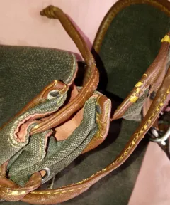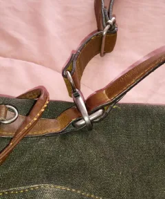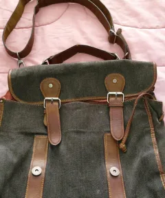 Bolsa portafolio Zara de mezclilla gruesa color verde, está en muy buenas condiciones, tiene forro, sus botones y correas completas, tiene un poco de desgaste en correa y borde dela bolsa, anexo fotos.