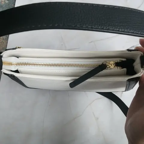 Nueva y original!!!! Sin detalles.Pregunta por disponibilidad.Hermosa bolsa black and white.La bolsa se puede usar al hombro y como Cross body ya que el asa larga de puede desmontar.Los detalles metálicos son en dorado.Medidas 26.5cm de largo en la parte más ancha y 21cm en la parte más angosta. De alto mide 14.5cm.