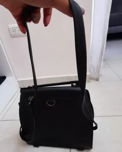 Bolsa/Mochila. Es de vinipiel, se hace mochila o la puedes usar cruzada tiene manera para que la acomodes como te guste.