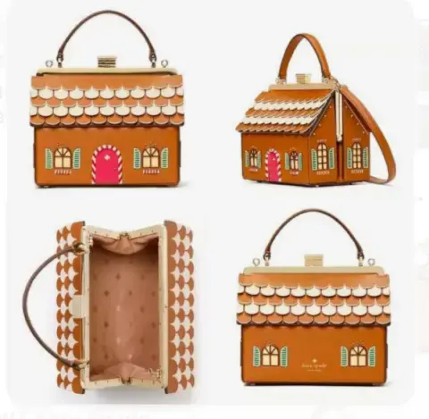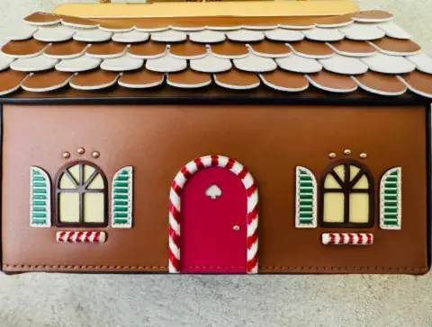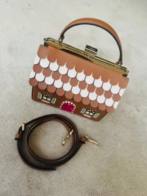 Los detalles de Navidad para la temporada son siempre chics! NUEVA! Hermosa bolsa 100% piel temática de la Navidad con forma de casa de galleta de jengibre muy típica de la temporada. Viene con su strap largo para usarse crusada. Perfectamente detallada y resistente. Ideal para regalo. Más opciones en mi clóset.