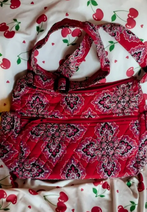 Bolso al hombro rojo paisley. Bolso al hombro rojo paisley, tiene un bolsillo con cierre al frente, bolsillos mini a los costados un bolsillo interior amplio el tirante es ajustable.