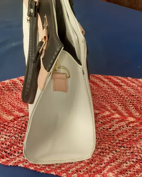 Bolso blanco tricolor. Bolso grande de gran capacidad y calidad,contiene su correa,aza y forro textil.