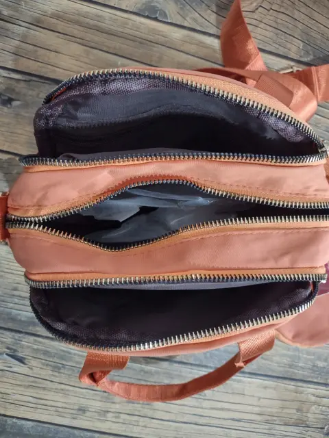 Bolso chico, cangurera. Super práctica cangurera, naranja. Nueva.Con correa ajustable, puedes usarla como cangurera o bolso cruzado, con tres bolsas principales con otra interna y bolsa al frente y atrás. Muy práctica para llevar todo en orden.
