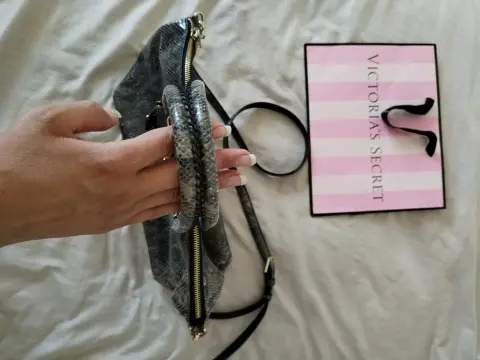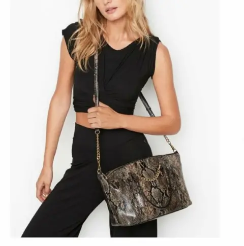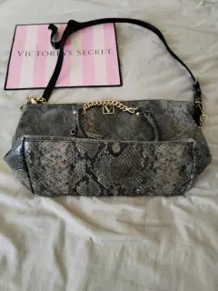 Bolso cruzada Victoria's Secret. Preciosa bolsa cruzada tela tipo serpiente, buen tamaño, esta aún en buenas condiciones, únicamente tiene ligero desgaste en la tela y en las esquinas como se muestra en la última foto.