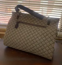 Bolso Guess. Bolso tipo denim, textil mezclilla con detalles tipo cuero, amplio interior, compartimiento con cierre interior y posterior, cierre con broche al frente. Incluye asa larga para crossbody