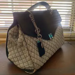 Bolso tipo denim, textil mezclilla con detalles tipo cuero, amplio interior, compartimiento con cierre interior y posterior, cierre con broche al frente. Incluye asa larga para crossbody