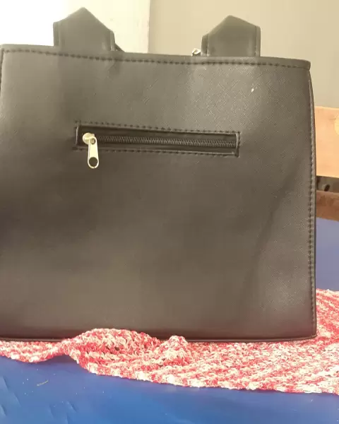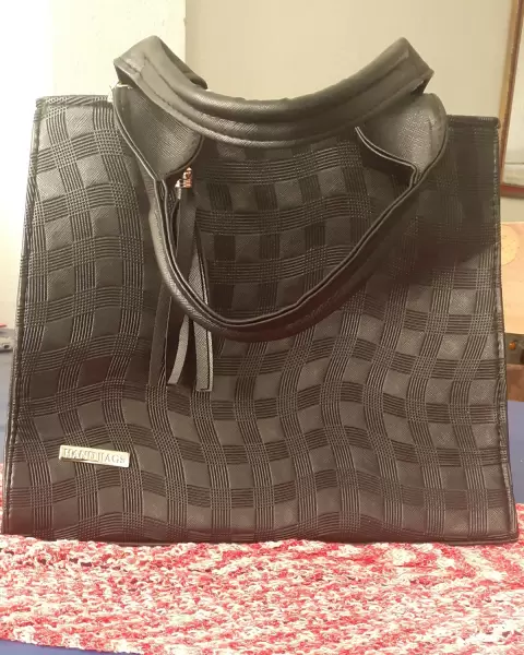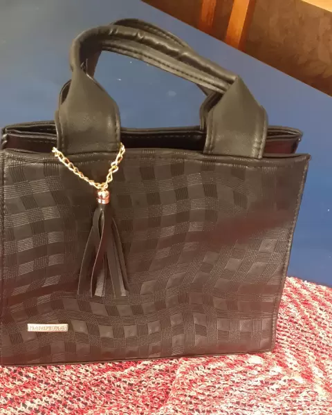 Bolso super práctico, con forro textil y correa, está amplia.