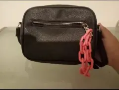 Bolsa de correa negro de marca thats it , tiene detalle rosa , no tiene nada roto , fue muy poca utilizada, para cualquier edad , con medidas de 12 CM de ancho y 19 de largo , 63 de largo de la correa. Cualquier duda estoy para servirles 😊