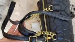 Hermosa Crossbody o de mano Betsey Johnson Original en color negro con herrajes dorados, Detalles de uso los raspones en las esquinas que se muestran claramente en las fotos, puedes restaurar pintando.👜😍🎀ÚLTIMO PRECIO. NO MENOS❗Mide 28 cm de Ancho X 24 cm de Alto.OJO!! Grabo antes de enviar por seguridad de mi prenda, corroborando su estado 👁️👁️