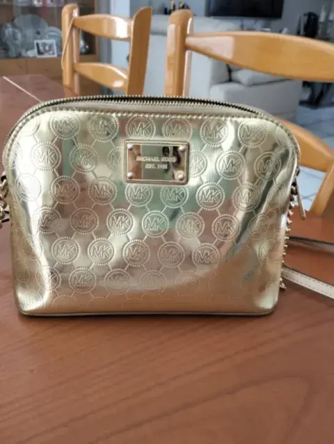 Bonita bolsa crusada en tono dorado en perfecto estado la placa trae un tallón que casi no se ve