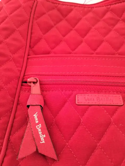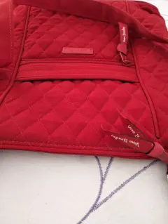 Bonita bolsa roja en tela acolchada con strap para colgar cruzada