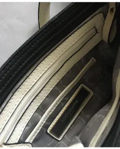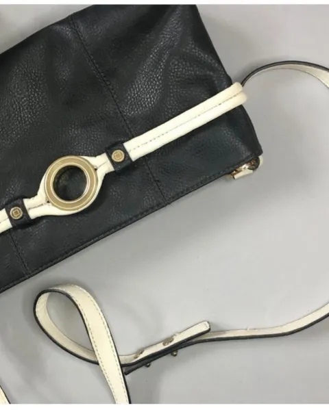 Súper práctica y casual bolsa crossbody, en negro con detalles blancos que crean un perfecto contraste, marca Liz Clairbone