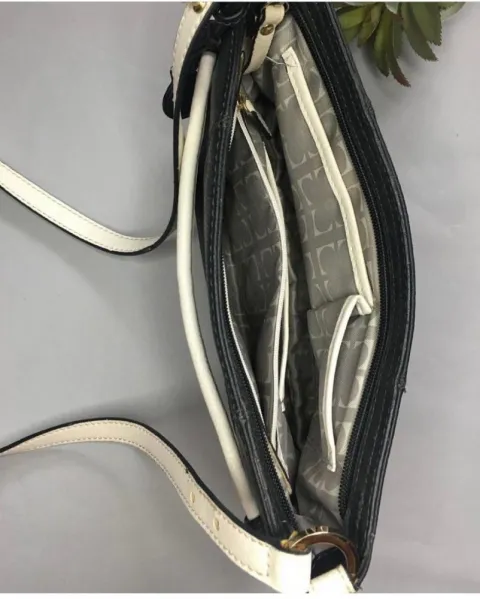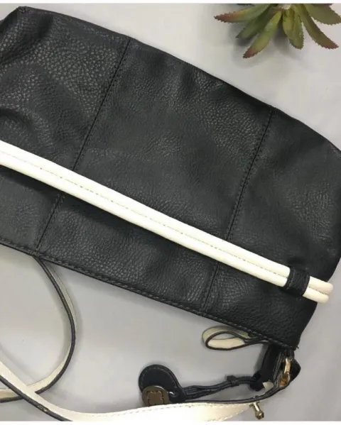 Crossbody Liz Clairbone. Súper práctica y casual bolsa crossbody, en negro con detalles blancos que crean un perfecto contraste, marca Liz Clairbone