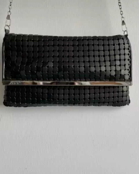 Crossbody Metalica TodoModa. La bolsa esta hecha de metal por fuera y forrada en tela, mide 13 centímetros de alto y 22 cm de ancho, está en excelente estado, solo tiene pequeños rayoncitos en algunos cuadritos de metal pero por cámara no se logran ver.