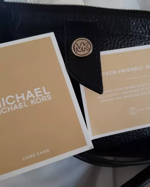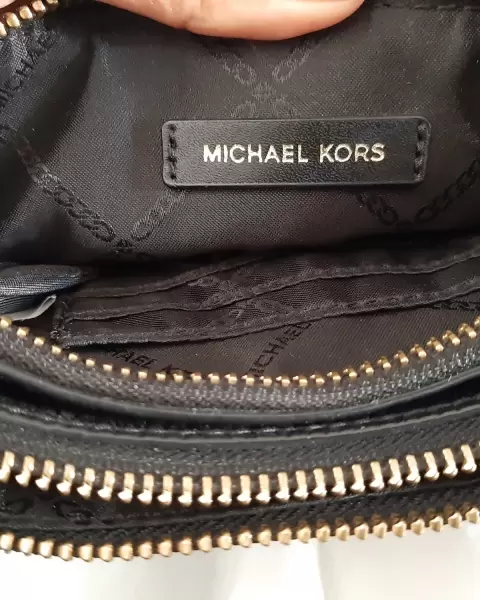 Crossbody MK. Hermosa bolsa crossbody mkOriginal con certificado de autenticidad.Color negro , material piel. Herrajes color oro.Muy buen estado, sin detalles. Son 4 compartimentos , 2 con cierre y lugar para tarjetas en los dos.