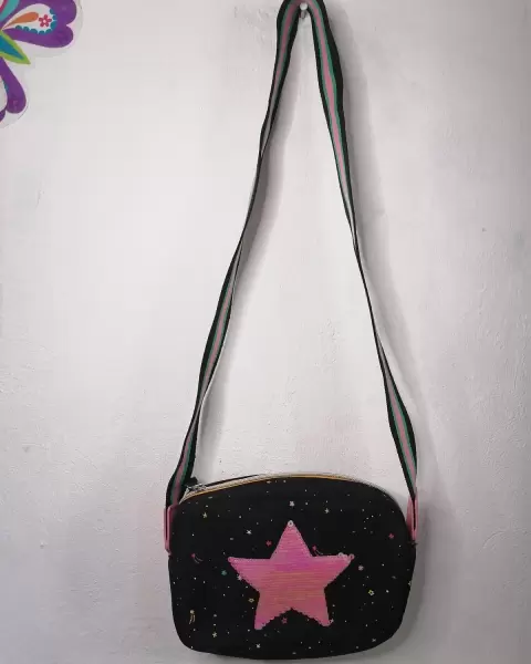 Bolsa juvenil, super practica para llevar lo necesario. Te encantará fondo negro y tonos verde, rosa. Estrella Tornasol blanca rosa. 💚 Sin detalles, te va a encantar!!* Compra más artículos de mi perfil y mejoro el precio* 💋Elige en todo mi clóset y combina lo que quieras 😎Si es tu primer compra busca en la última imagen el código, ingresalo antes de pagar 😉