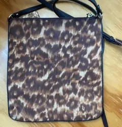 Manesajera coach animal print. Diseño en tela estampada animal print y piel. Categoría vintage y muy cuidada, alto 20 ancho 18, perfecta para uso casual.