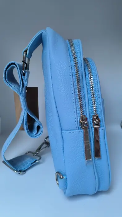 Mariconera Steve Madden Azul Cielo cuenta con monedero y puedes cambiar la correa de lado, tiene tres bolsas dos con cierre y uno normal