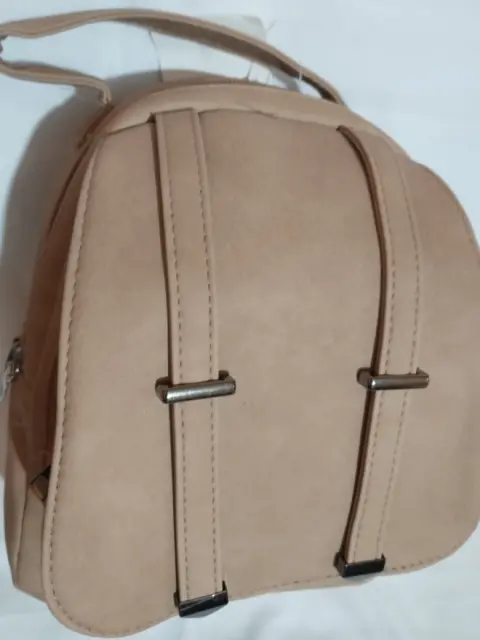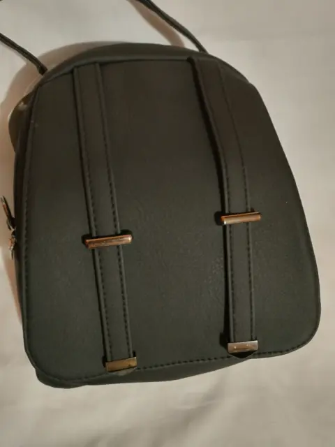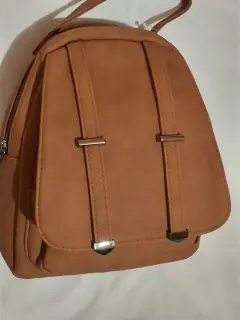 Mochila de color negro con dos compartimientos y hombrera ajustable,con detalles al frente,medidas 27cm por 16cm.