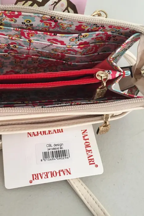 😍Naj Oleari Bello Bolso 👜 de hombrosÚnica A estrenar con certificaciónDescripción:Hermoso bolso de hombros para dama, puede ser usado también como cartera, con muchos compartimientos, en tono beige diseñado en Italia de la marca Naj Oleari, solo tiene un pequeño detalle en una de sus esquinas, realmente hermoso!