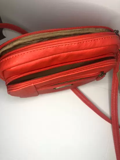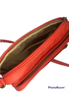 Padrísima bolsa color naranja, con tres compartimientos y uno interior, la correa es ajustable, esta nueva te va a encantar es muy practica.