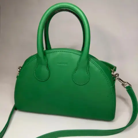 The Quesadilla Bag (Bolso / Bolsa). Bolso crossbody de estructura rígida, cierre de cremallera, strap a tono, con bolsillo interior.💚 Marca: Omeoni👉 Alto: 14.50 cm👉 Largo: 23 cm👉 Ancho: 6.5 cm👉 Material: Napa Sintética👉 Forro: Algodón⚠️ Único detalle: Una parte de la correa se encuentra sin pintura, se muestra en la penúltima foto.