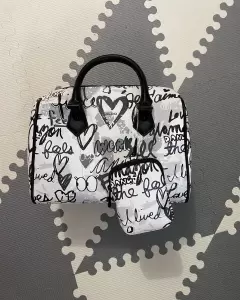Hermosa bolsa tipo cilindro con estampados en color negro y blanco, super linda y practica
