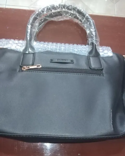 Bolsa. Bolsa hermosa color negro con llavero de pompon morado