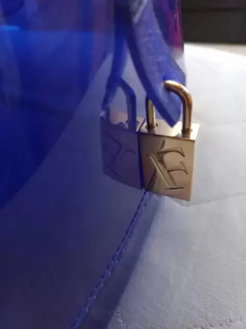 Bolsa azul rey plastico, usada FurlaCon su guarda polvo y candado su cierre funciona bien solo se uso poco