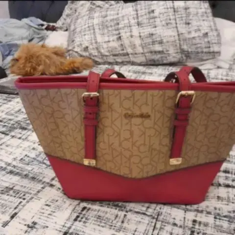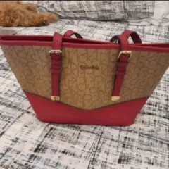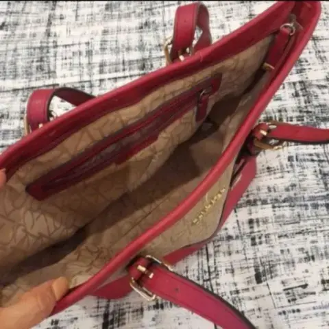 Bolsa calvin klein. Bolsa de marc original, color rosa con café, cierres originales, sin detalles de uso.
