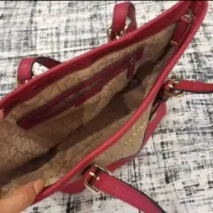 Bolsa de marc original, color rosa con café, cierres originales, sin detalles de uso.