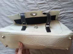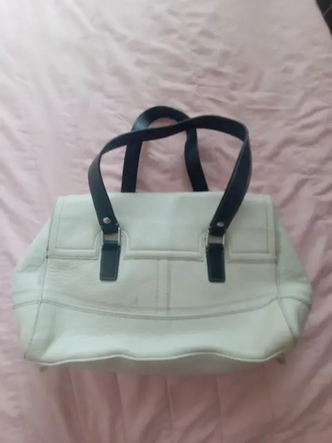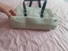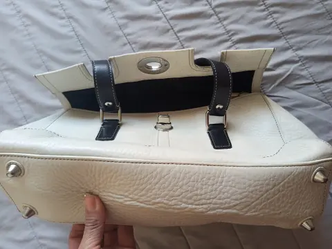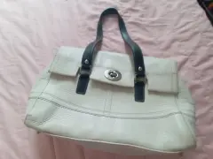 Bolsa blanca de piel marca Coach original, amplia ya que tiene broche a los costados para hacer más grande, correas color negro. Medidas 33 cm de largo, 25 de alto. Usada en buenas condiciones.💕
