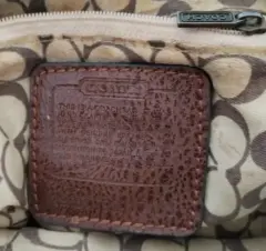 Bolsa Coach monograma. Bonita bolsa Coach monograma de mano, color café, es piel y tela, súper combinable. Tiene algunos detalles de uso, pero aún le queda mucha vida de uso.