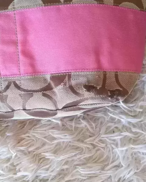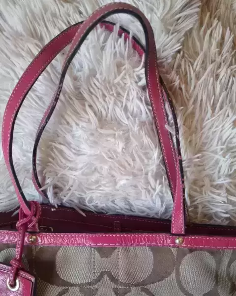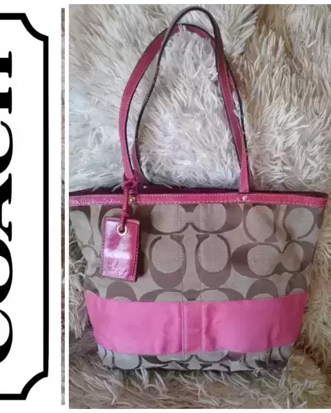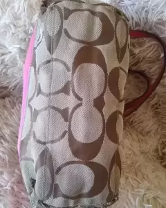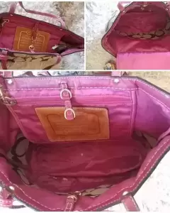 Bolsa Coach mediana CON DETALLES DE USO de RASGADURAS EN LAS ESQUINAS DE ABAJO Y EN LAS ASAS(PELADAS DE LAS ORILLAS) como se ve en las fotos 👁️👁️, FORRO Intacto, le falta una lavada.ÚLTIMO PRECIO!!. Solo compras seguras.OJO!! Grabó video antes de envía por seguridad de mi bolsa. 🌸