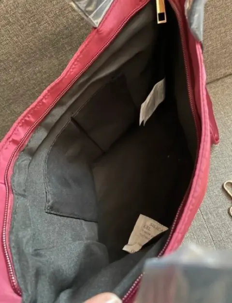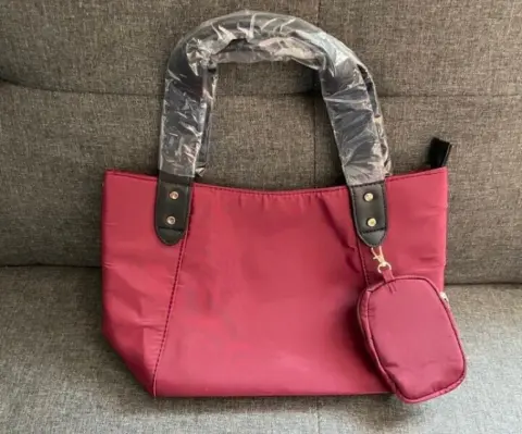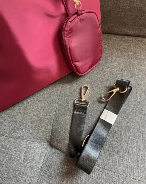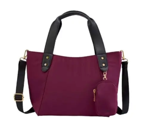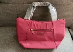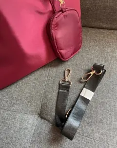 Bolsa de tela de la marca ésika en color guinda con asas y correa en contraste negro.Cuenta con estuche removible.Totalmente nueva a estrenar.Precio de catálogo y tienda en línea $520