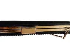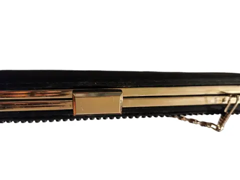 Linda bolsa de mano tipo clutch está en perfecto estado no tiene ningún detalle solo un poquito rayadito el metal pero ha estado guardada realmente solo se usó en dos ocasiones le cabe perfectamente un celular un labial cosas muy pequeñitas es la parte de atrás es de satín y la parte de adentro también las medidas sonLargo 25cmAncho 11Profundidad 3 cm