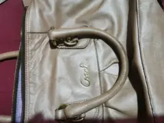 Bolsa de hombro COACH. Hermosa bolsa de HOMBRO DE CUERO color ocre tamaño mediano herrajes cintas forro cierres broches perfectos solo algo desgaste en asas que ni se nota tiene su TAG de la marca y e ideal en el carrito de auténtica.