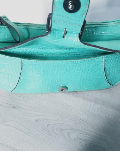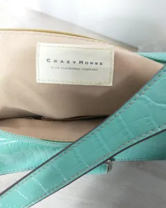 Hermoso bolso de mano color menta, marca liz claiborne, efecto piel de cocodrilo.El color es de súper temporada.