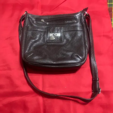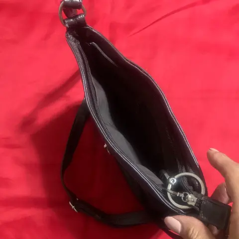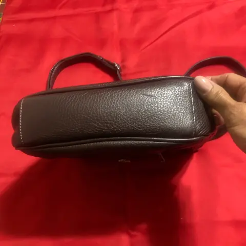 Hermosa bolsa de piel, color café oscuro, 22X22X6 cm, en buen estado, sin detalles ni raspadura, asas completamente sanas