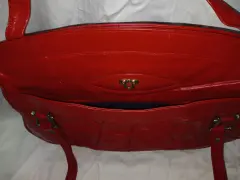Bolsa de mano de piel color rojo. Bolsa de mano color rojo, cuenta con cierre externo, también un compartimento en la parte frontal, parte interna con división y bolsa interna con cierre