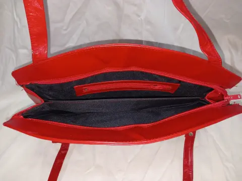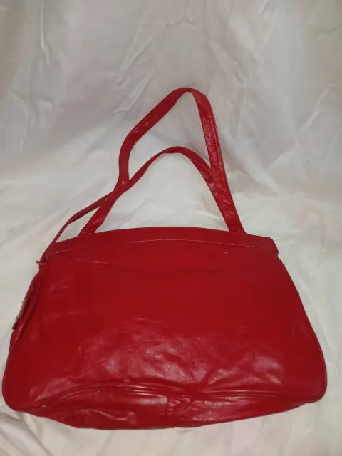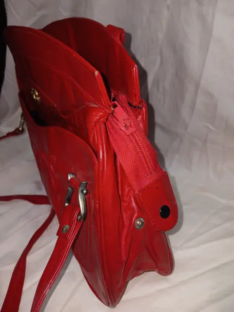 Bolsa de mano de piel color rojo. Bolsa de mano color rojo, cuenta con cierre externo, también un compartimento en la parte frontal, parte interna con división y bolsa interna con cierre