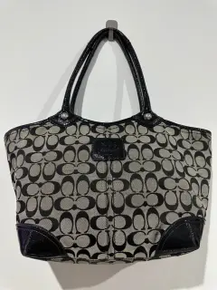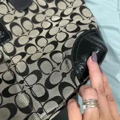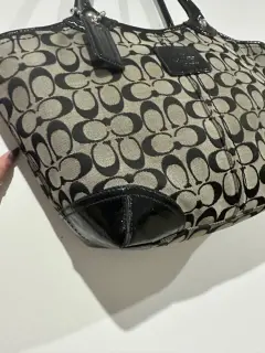 Bolsa de mano grande de tela y charol!Cuenta con su tagEs original, no tengo la correaDetalles se muestran en las últimas 2 fotos