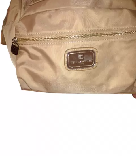 Bolsa de mano, impermeable, color café, con correa incluida, marca Ted Lapidus Paris.