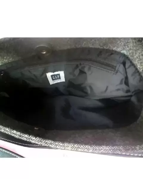 Bolsa de mano negra con gris gap. Bolsa de mano en tela como de lana, color gris y negro con vistas en las orillas de vinipiel negro igual que en la asa.
