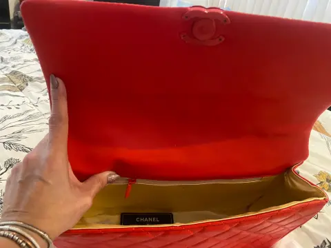 Bolsa de mano súper bonita y elegante, la puedes usar con algo casual con la cadena roja o con un atuendo formal poniendo la cadena por dentro y usarla como un clutch. Te va a encantar!
