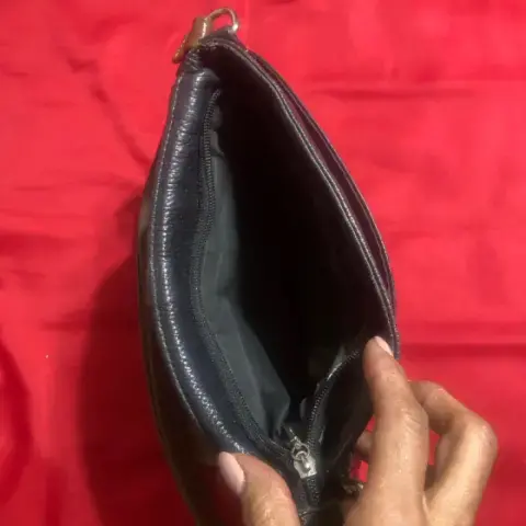 Bolsa de piel, azul marino. Práctica bolsa de piel azul con café, 24X23X$7 cm, sin detalles, las asas completo buen estado, sin talladuras, 3 compartimentos.